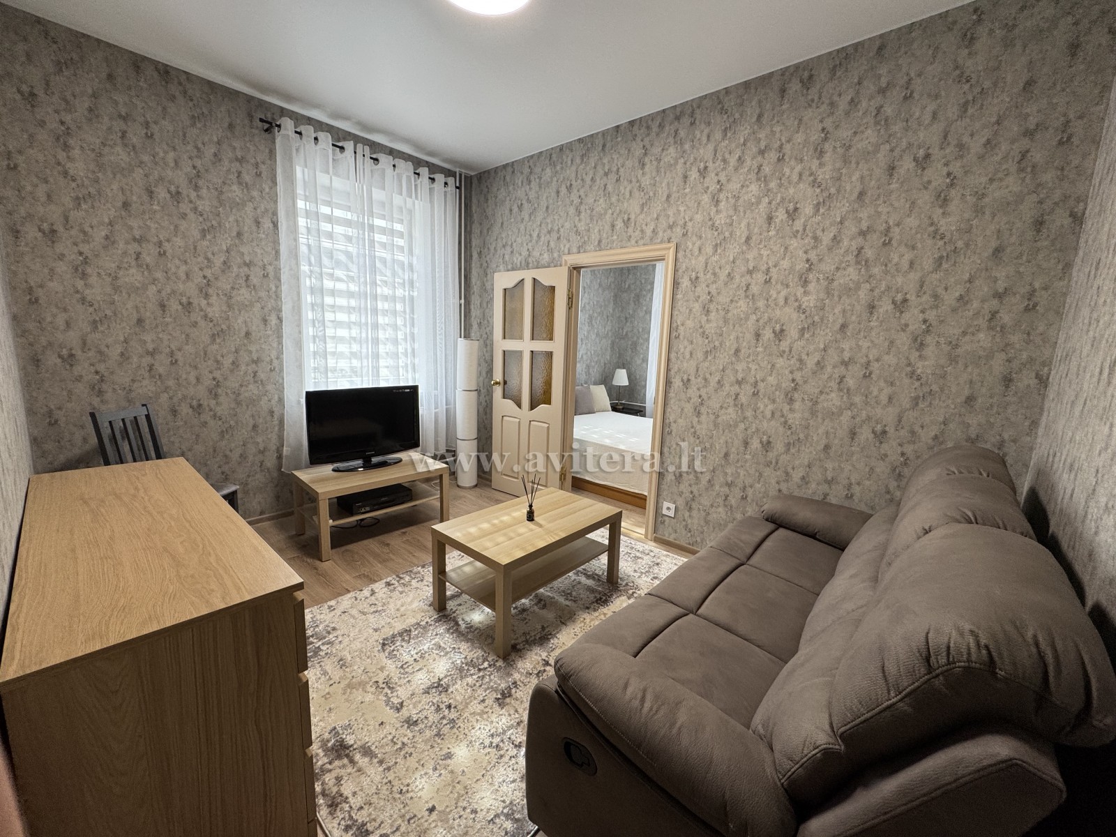 Taikos pr., miesto centre, išnuomojamas jaukus vieno kambario butas. Bute visi reikalingi baldai ir buitinė technika: sofa-lova, drabužių spinta, darbo staliukas, komoda su televizoriumi, virtuvėje yra skalbimo mašina, šaldytuvas, k...