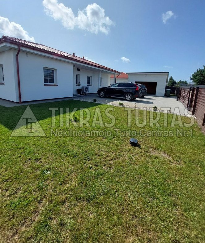 Tiesiogiai iš statytojo, parduodamas stilingas A+ klases vieno aukšto 95 kv.m. namas 6 arų žemes sklypu. Namas pilnai irengtas.IŠPLANAVIMAS:Tamburas - 4.96 kv. m.Virtuves, valgomojo ir svetaines bendra erdve - 16...