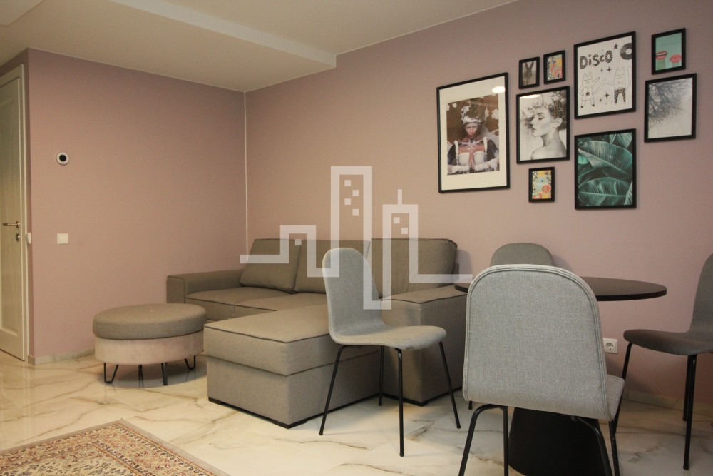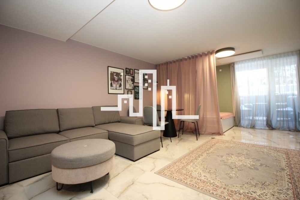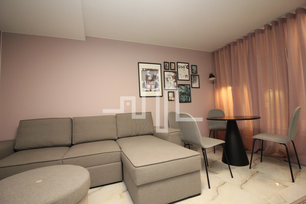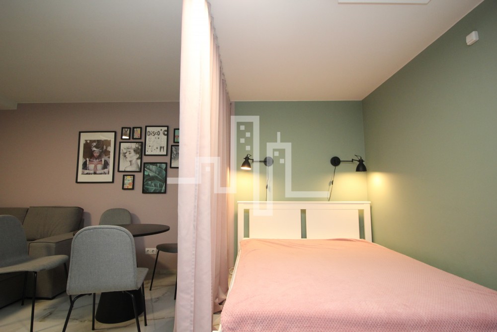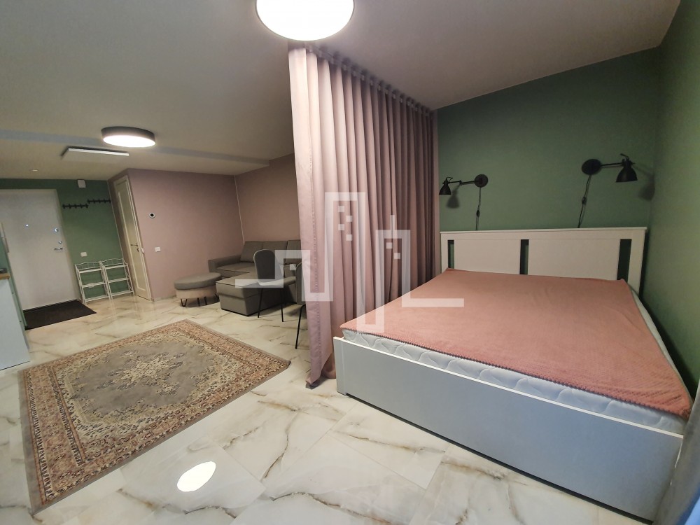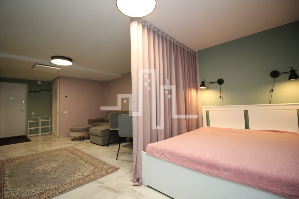 2018 m. statybos mūrinis namas 33 kv. m. bendras plotas 0/4 aukštas 1 kambarys Šildymas elektra Langai orientuoti į baseino pusę Parduodamas su baldais ir buitine technika
