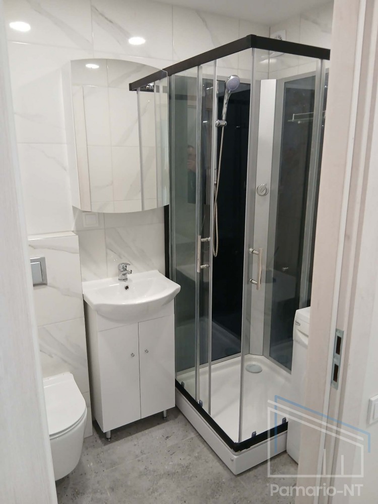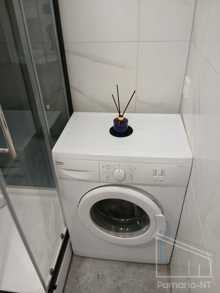 Yra rūsys, langai su stiklo paketais, laminatas, virtuvės baldų komplektas, su baldais, nekampinis, yra buitinė technika, nauja santechnika, šarvuotos durys