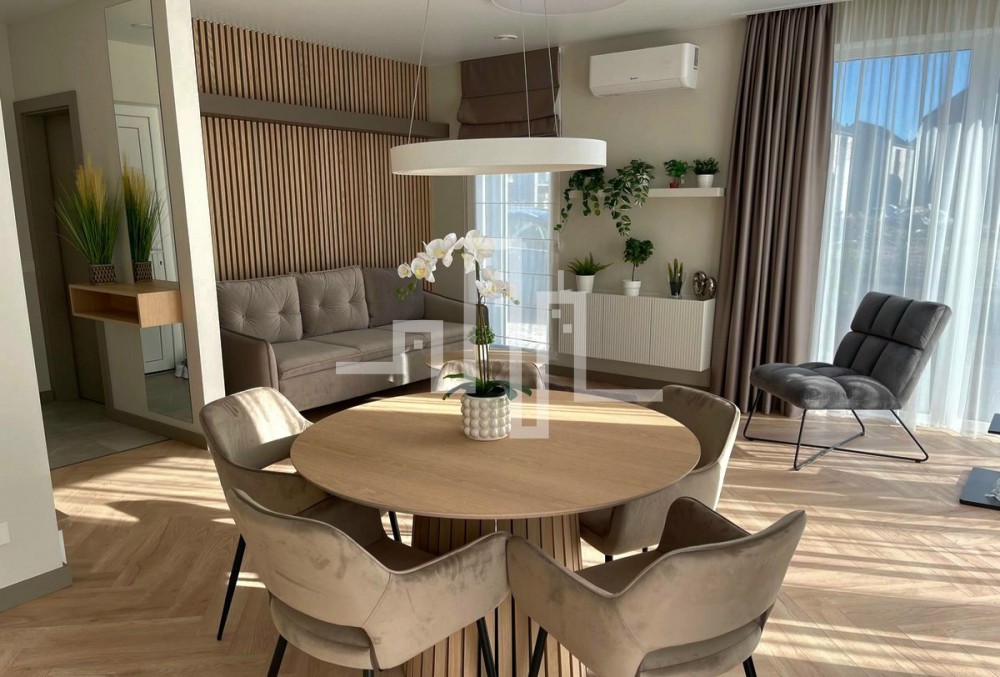 Paskirtis gyvenamasis namas, komunikacijos miesto, šildymas dujinis, šildomos grindinis, kiekvienas butas turės didelę kampinę lauko terasą, žemės sklypo dalį 3a, su pilna apdaila, sklypo teritorija aptverta, sutvarkytas gerbūvis, dvi nemokamos automobilio parkavimo vietos.