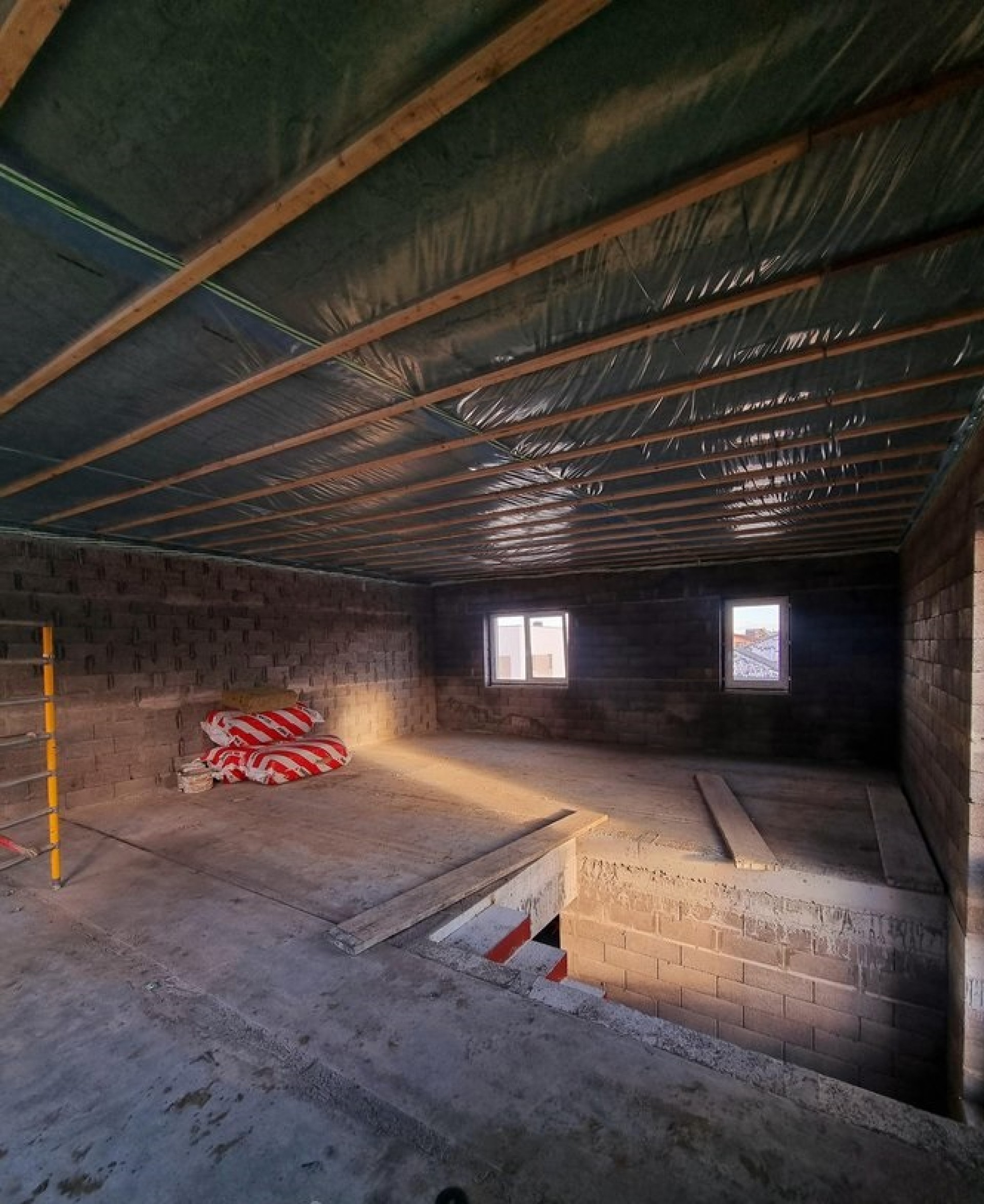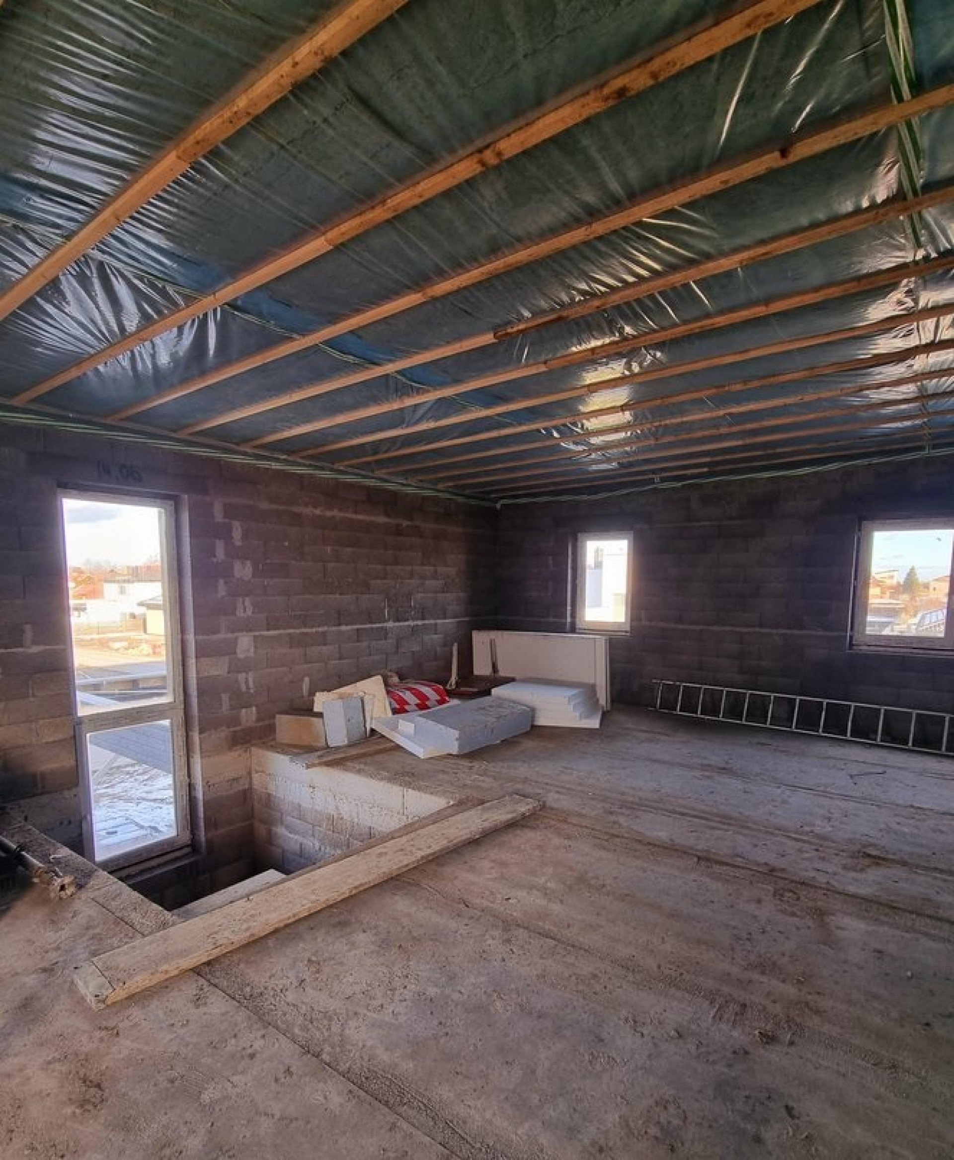 Į dalinę apdailą įeina modernus pilnas namo fasadas (vietomis uždėtas dekoras, kitur medinės fasadinės dailylentės arba meldorfer plyteles), HS sistemos terasiniai langai kiemo pusėje, sutvarkytas gerbūvis (tvora, išlygintas augalinis sluoksnis, trinkelės). Viduje: pirmas elektros instaliacijos etapas, santechnika, išvedžiotas grindinis šildymas, išbetonuotos grindys, įrengtos pertvaros, ištinkuotos sienos, rekuperacinės sistemos vamzdyno išvedžiojimas.
