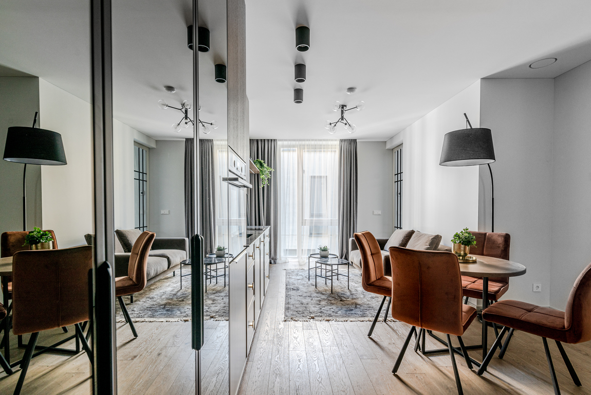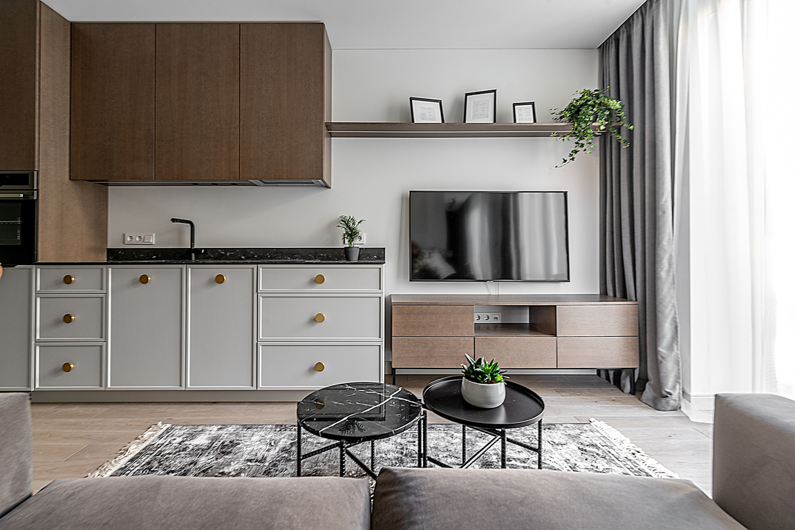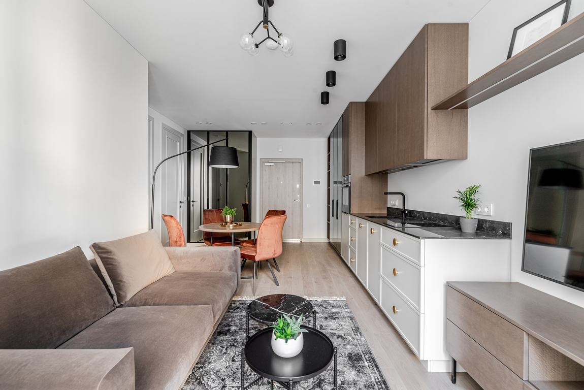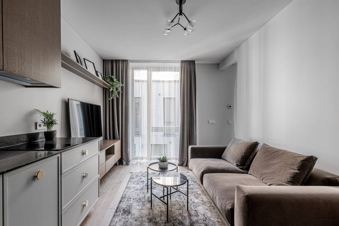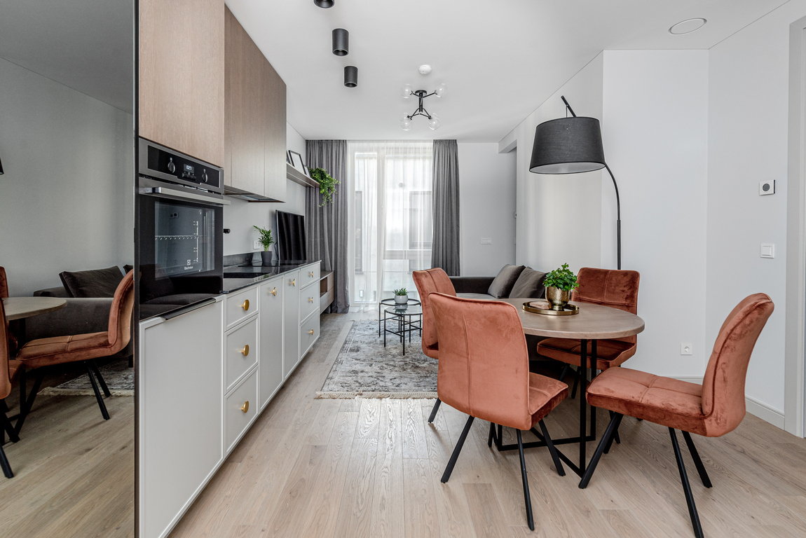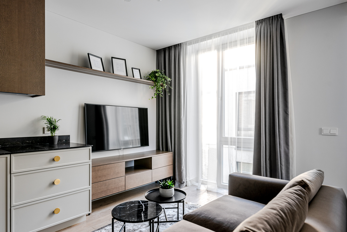 IŠNUOMOJAMAS PAGAL DIZAINERIO PROJEKTĄ ĮRENGTAS 2 KAMBARIŲ BUTAS ŠALIA LUKIŠKIŲ AIKŠTĖS, DAINAVOS GATVĖJE, LIVE SQUARE PROJEKTE.