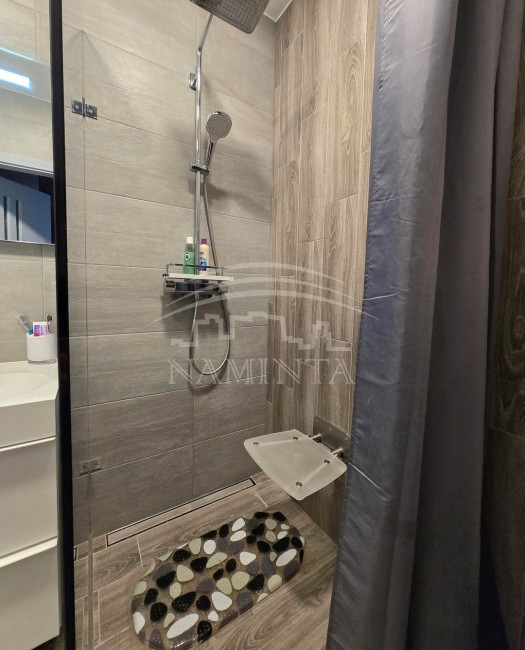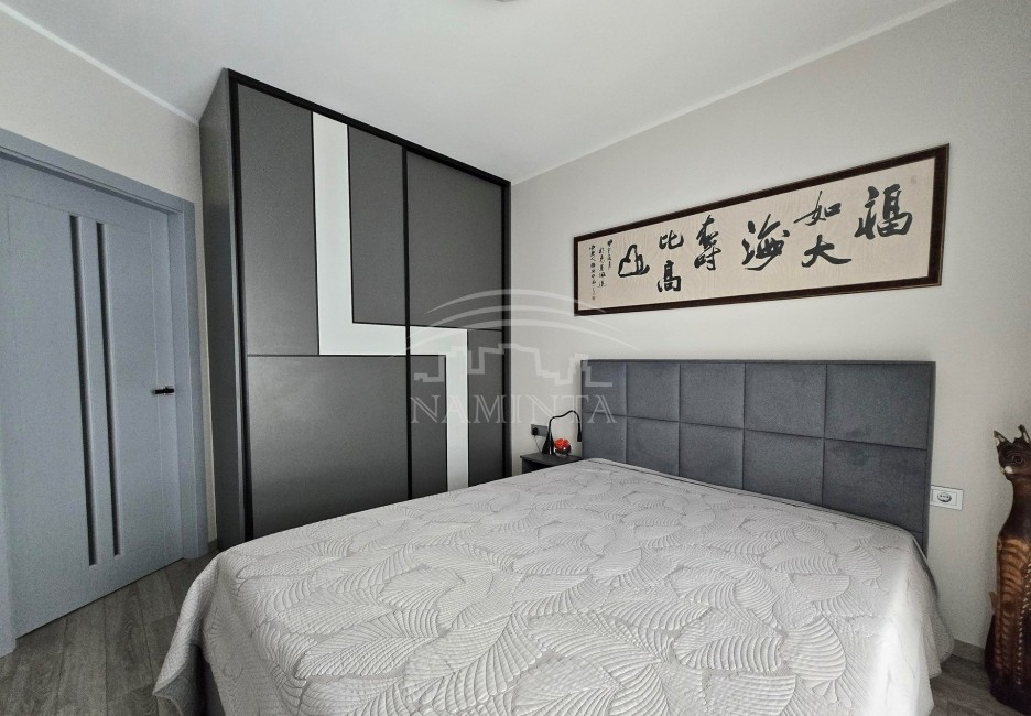 Parduodamas šiltas ir šviesus 42 m2 2 kambarių butas „Saulės butų“ kvartale, Ragainės g., Klaipėdoje. Butas yra 4 aukšte (netripsens virš galvos), langai vakarų pusėje. Butas parduodamas su visais baldais (gaminti pagal individualų projektą, siekiant maksimalaus funkcionalumo ir naudojant kokybiškas medžiagas bei santechniką, durys - uosio) ir buitine technika (indaplovė, šaldytuvas, indukcinė kaitlentė, orkaitė, mikrobangų krosnelė, gartraukis, skalbimo mašina, sumontuotas kondicionierius), todėl galima iš karto įsikelti ir gyventi. Talpios spintos, tad turėsite erdvę laikyti rūbus ir kt. Svetainė sujungta su virtuve, vonia ir WC kartu – įrengta dušo kabina, atskirta tamsintu stiklu, įmontuota sieninė kėdutė. Plastikiniai langai (roletai, tinkleliai nuo vabzdžių). Butas turi balkoną (grindys išklotos danga, lauko baldai, didelė daiktadėžė). Kolektorinė – centrinė miesto tinklų šildymo sistema su įrengtais šildymo apskaitos skaitikliais (grindinis šildymas oras vanduo, reguliuojamas kiekviename kambaryje atskirai – ekonomiškas išlaikymas, maži komunaliniai mokesčiai. Kiekviename buto kambaryje sumontuoti sieniniai rekuperatoriai. Ant namo stogo sumontuota saulės elektrinė, mažinanti bendrųjų namo reikmių elektros sąnaudas. Tvarkinga laiptinė, ramūs, draugiški kaimynai. Butui priklauso 2 parkavimo vietos su įrengtais užraktais (15 m2 ir 12 m2), sandėliukas 4 m2 (įrengtos lentynos, apšiltintas, pakeltos ir išbetonuotos grindys, todėl visada sausa).