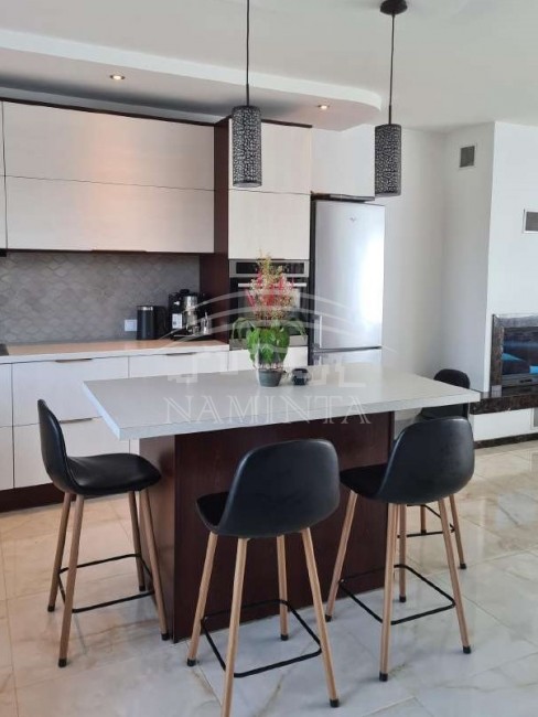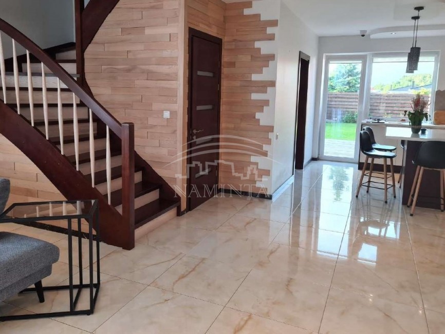Parduodamas sublokuotas ir pilnai įrengtas namas su baldais Klaipėdos rajone Mazūriškių km. Tai erdvūs, šviesūs ir labai šilti namai esantys geroje lokacijoje. Prieš metus atnaujintas ir perdažytas visas namo fasadas. Naujai pakeistas virtuvės baldų fasadas, perdažytos sienos. Ant visų langų yra roletai nuo saulės. Tiek pirmame, tiek antrame aukšte yra garso izoliacija bendrose sienose su kaimynais, jų nesigirdi. Koridoriuje įmontuota didžiulė spinta, antro aukšto drabužinėje- atvira spinta. Yra židinys, kuris suteikia jaukumo ir šilumos šaltesniu metų laiku. Vonios kambarys erdvus, jame yra ir dušas, ir vonia. Kambariai šviesūs, aukštomis lubomis. Galima įsirengti ir balkoną (yra balkono durys antrame aukšte). Šildymas vietinis centrinis (granulinis), pirmame aukšte ir 2 aukšto vonioje grindinis. Taip pat yra vandens filtrai. Vietinis vandentiekis, vietinis nuotekų šalinimas. Kiemas sutvarkytas, pastatytas sandėliukas, medinė terasa, išklotos trinkelės, medinė tvora, automatiniai vartai, auga gėlės ir vaismedžiai. Didžiulių, žalių tujų tvora priduoda kiemui erdvės ir žaliuoja visus metus. Visai netoli yra naujai įrengta vaikų žaidimų ir sporto aikštelė. Netoli- autobusų stotelės, Rimi parduotuvės, darželiai. Taip pat labai ramūs ir draugiški kaimynai už sienos ir aplink.