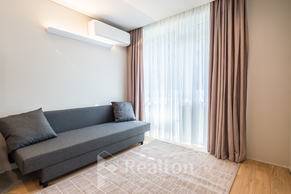 -- Svetainėje yra sofa-lova, rozetės su USB krovimo lizdais, pagal nuomininko poreikius galima apstatyti papildomais baldais: tv/kavos staliukais, darbo/valgomojo staliuku su kėdėmis