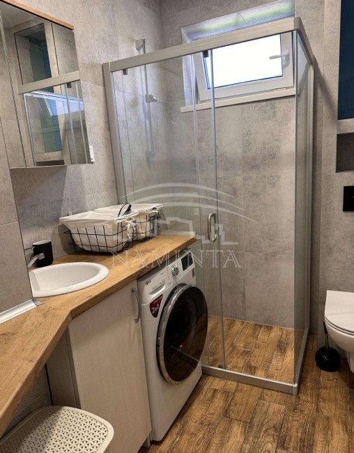 Klaipėdoje, Jurginų g. parduodamas 2-jų kambarių butas,3/1a,43kv.m.Namas renovuotas, išmokėta,butas suremontuotas,šildymas oras-vanduo, grindinis šildymas, granulinė krosnelė,pl langai,šarvo durys,su baldais,sandėliukas,skardinis garažas.