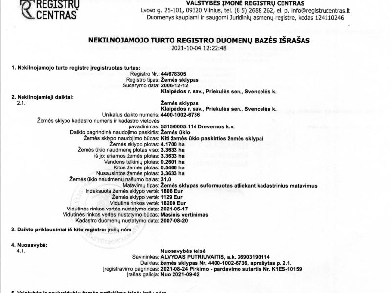 Parduodamas 4.17 ha.žemės sklypas Klaipedos raj.Svencelės k. Sklype suformuoti 17 namų valdos sklypų po 20-25a. NUOSTABI VIETA VERTINANTIEMS GAMTA ! Kaina 730000eur. DAUGIAU ALTERNATYVIŲ PASIŪLYMŲ RASITE ADRESU Reikalinga profesionali pagalba PERKANT ar PARDUODANT nekilnojamąjį turtą - KREIPKITĖS ! NEMOKAMAI KONSULTACIJAI,SKAMBINKITE 865090890 Investuok į žemę šiandien! Žemė nesensta, negenda, nedega, niekur nepradingsta, yra nedraudžiama. Tai patikima, ilgalaikė ir atsiperkanti investicija, pigesnė nei šiandien vargiai kada dar ar bus. Atsisiuntus į telefoną “geoportal.lt” programėlę galėsite nuvykus matyti sklypo ribas ir apžiūrėti sklypą pagal jo ribas. Norint žemėlapyje įjungti sklypo ribų atvaizdavimą reikia atlikti šiuos veiksmus: Meniu->Sluoksniu įkėlimas->Duomenys matininkams ir žemėtvarkininkams-> reikia pastatyti varnele ties “Nekilnojamo turto kadastro žemėlapis (sklypai)” – ir matysite sklypu ribas bei kadastro numerius, atvykus į sklypą galėsite lengvai telefono pagalba apžiūrėti sklypą. - galima surasti sklypą žemėlapyje ir pasižiūrėti iš palydovo darytas nuotraukas, kas tris metus.