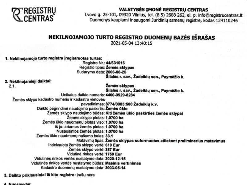 Parduodamas arba išnuomojamas sklypas Paymežio k. žemė yra dirbama ir prižiūrėta. NUOSTABI VIETA VERTINANTIEMS GAMTA ! Kaina 7000eur. DAUGIAU ALTERNATYVIŲ PASIŪLYMŲ RASITE ADRESU Atsisiuntus į telefoną “geoportal.lt programėlę galėsite nuvykus matyti sklypo ribas ir apžiūrėti sklypą pagal jo ribas. Norint žemėlapyje įjungti sklypo ribų atvaizdavimą reikia atlikti šiuos veiksmus: Meniu-Sluoksniu įkėlimas-Duomenys matininkams ir žemėtvarkininkams- reikia pastatyti varnele ties “Nekilnojamo turto kadastro žemėlapis (sklypai) – ir matysite sklypu ribas bei kadastro numerius, atvykus į sklypą galėsite lengvai telefono pagalba apžiūrėti sklypą. - galima surasti sklypą žemėlapyje ir pasižiūrėti iš palydovo darytas nuotraukas, kas tris metus. Reikalinga profesionali pagalba PERKANT ar PARDUODANT nekilnojamąjį turtą - KREIPKITĖS ! NEMOKAMAI KONSULTACIJAI,SKAMBINKITE 865090890 Investuok į žemę šiandien! Žemė nesensta, negenda, nedega, niekur nepradingsta, yra nedraudžiama. Tai patikima, ilgalaikė ir atsiperkanti investicija, pigesnė nei šiandien vargiai kada dar ar bus.
