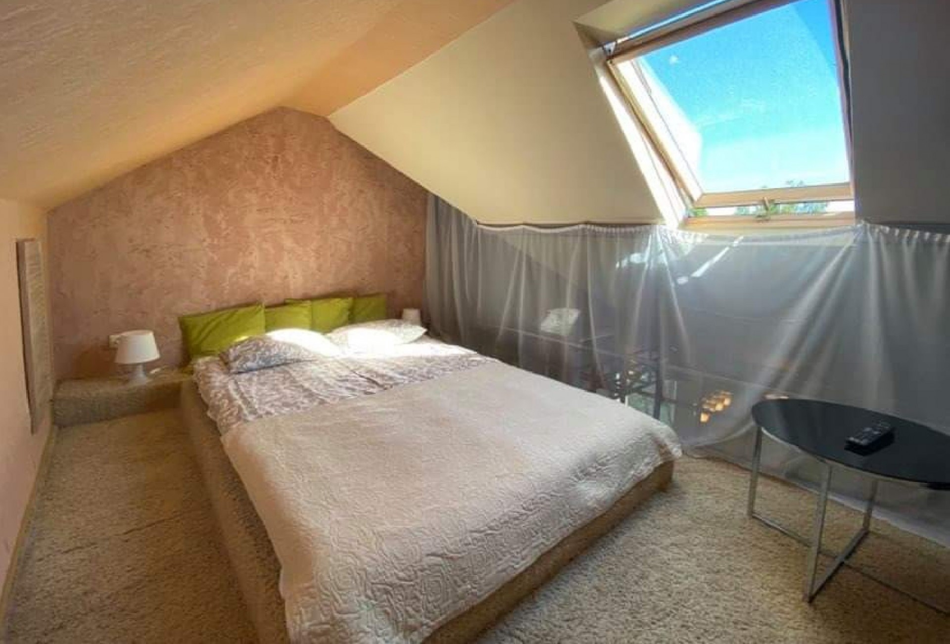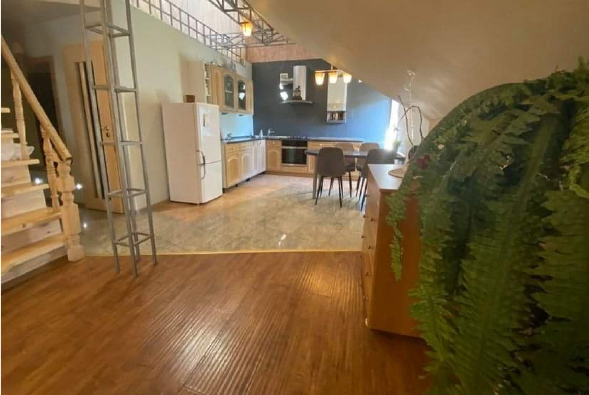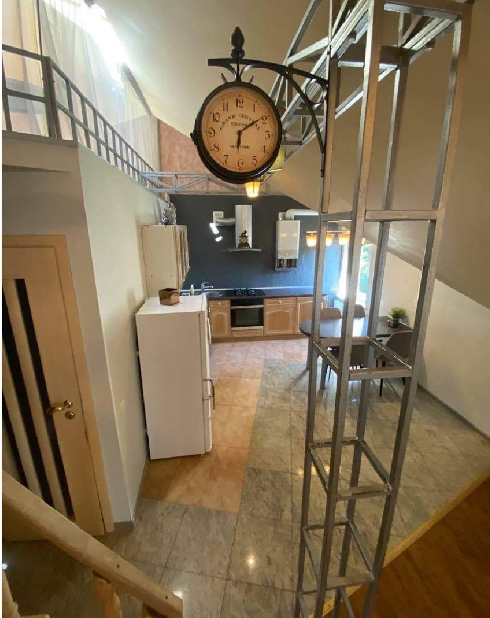 IŠNUOMOJAMAS NESTANDARTINIS LOFTO TIPO BUTAS PER 2 AUKŠTUS. Virtuvė sujungta su kambariu.