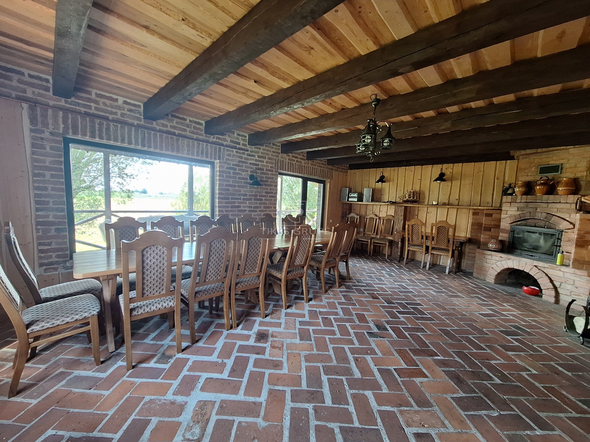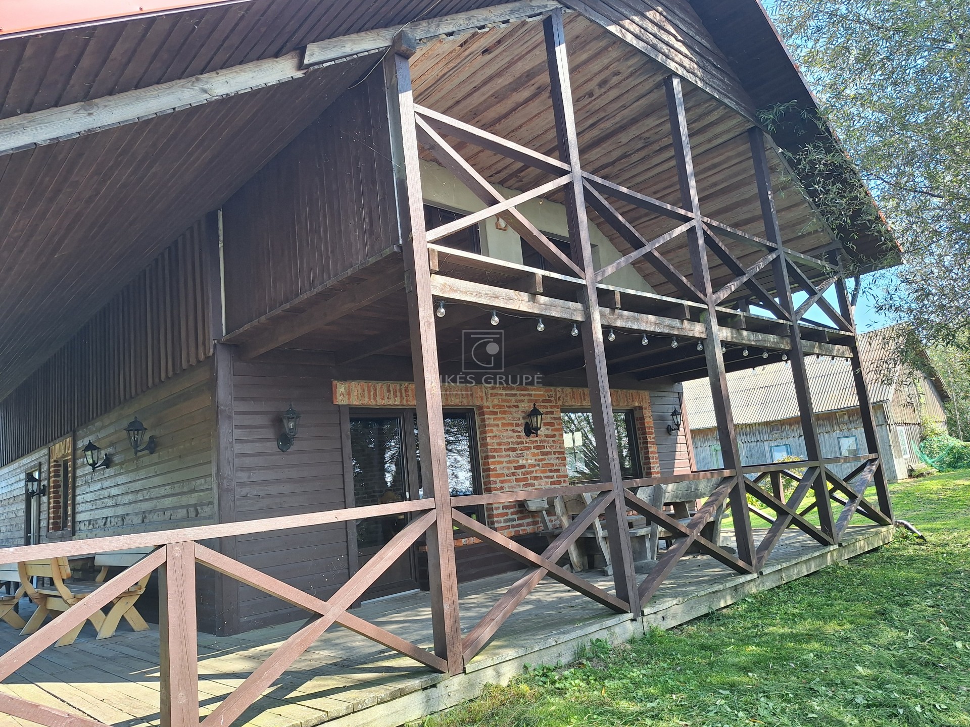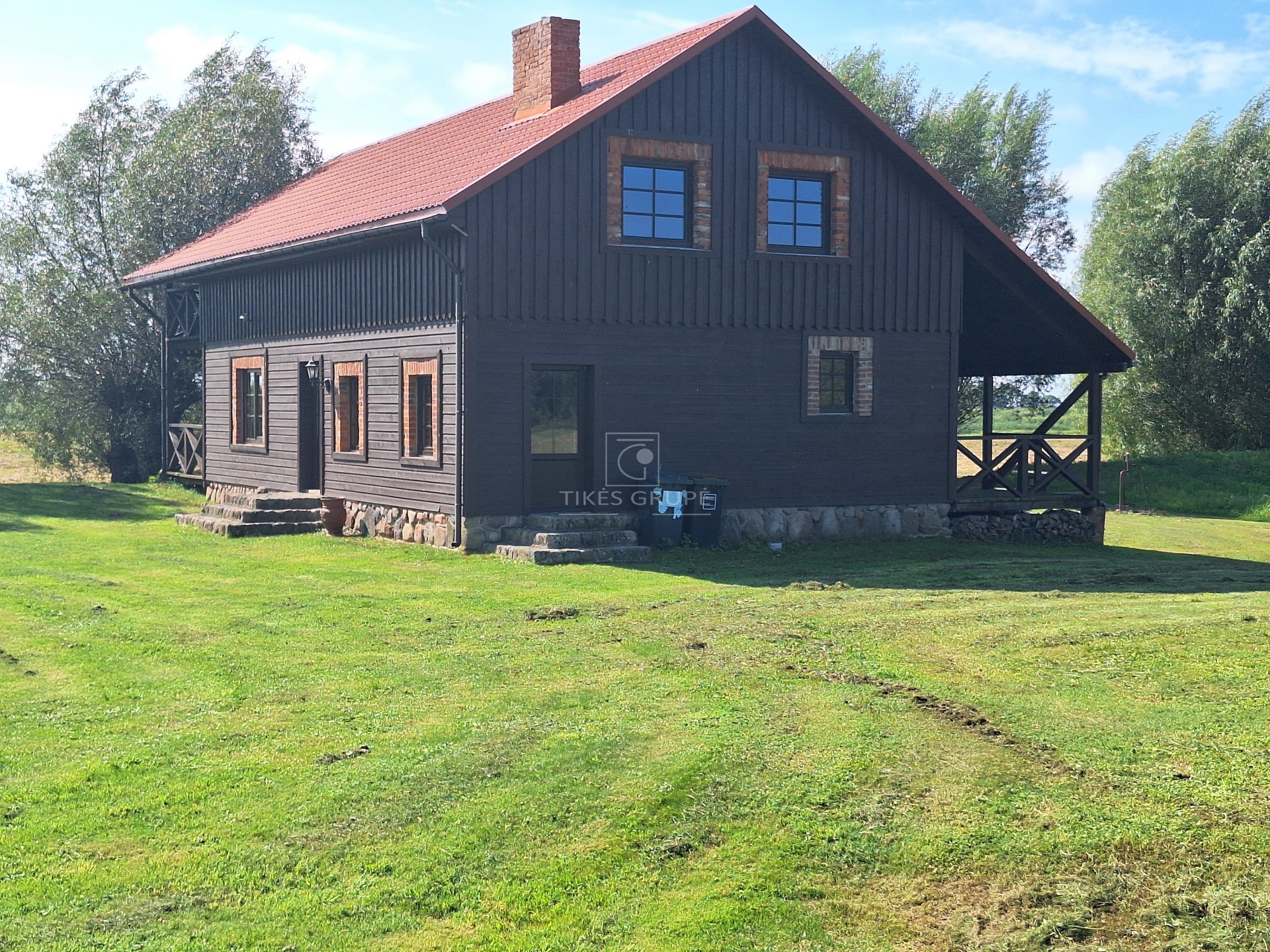 Dviejų aukštų namas su pirtimi 143 kv.m. Pirmame aukšte svetainė su židiniu, pirtis, priešpirtis, dušinė, wc, virtuvėlė, katilinė. Antrame aukšte 3 atskiri kambariai, wc patalpa. Šildymas kietu kuru, vanduo iš šulinio, nuotekos vietinės. Šio pastato paskirtis poilsio, galima keisti į gyvenamąją paskirtį.