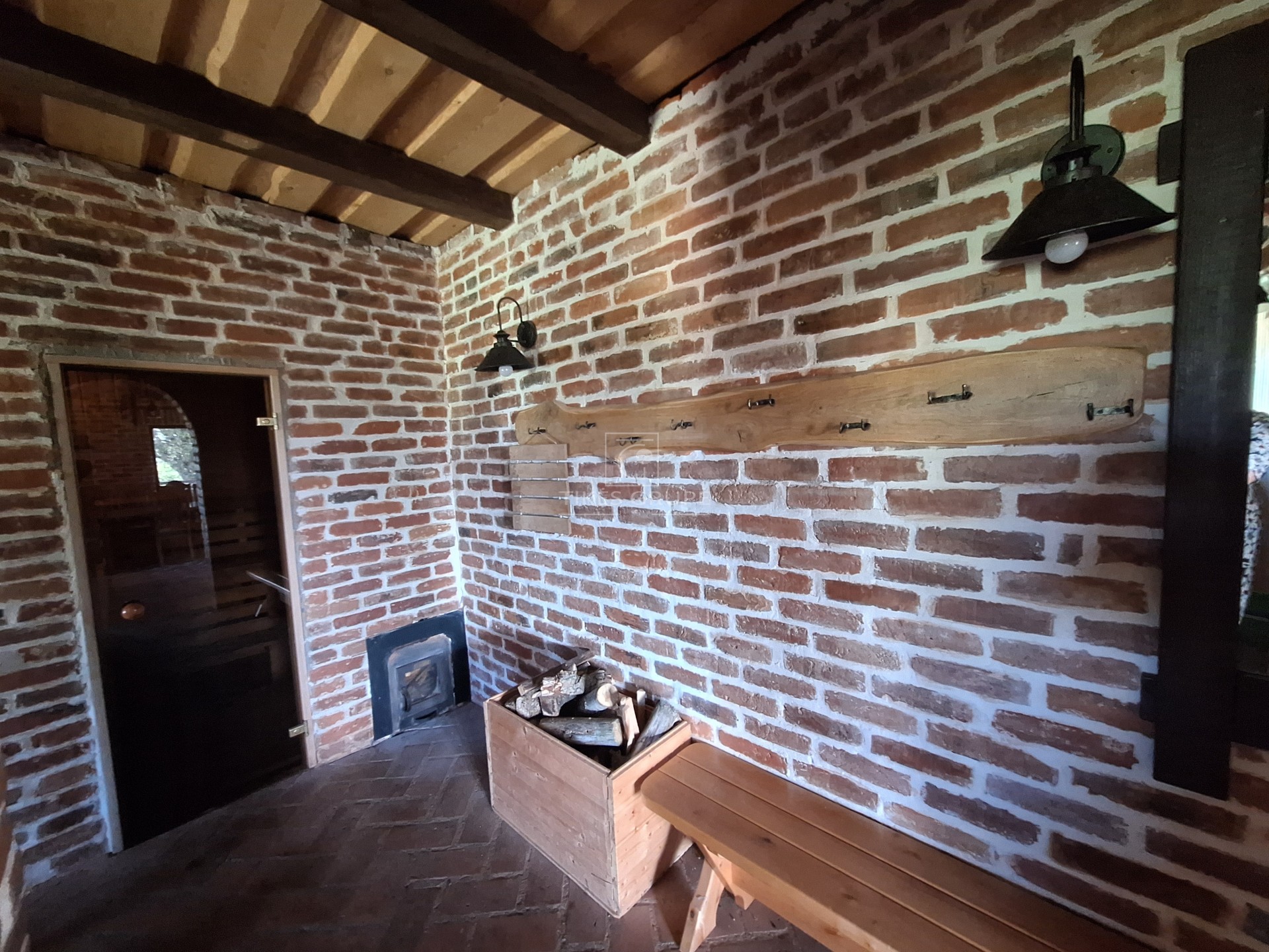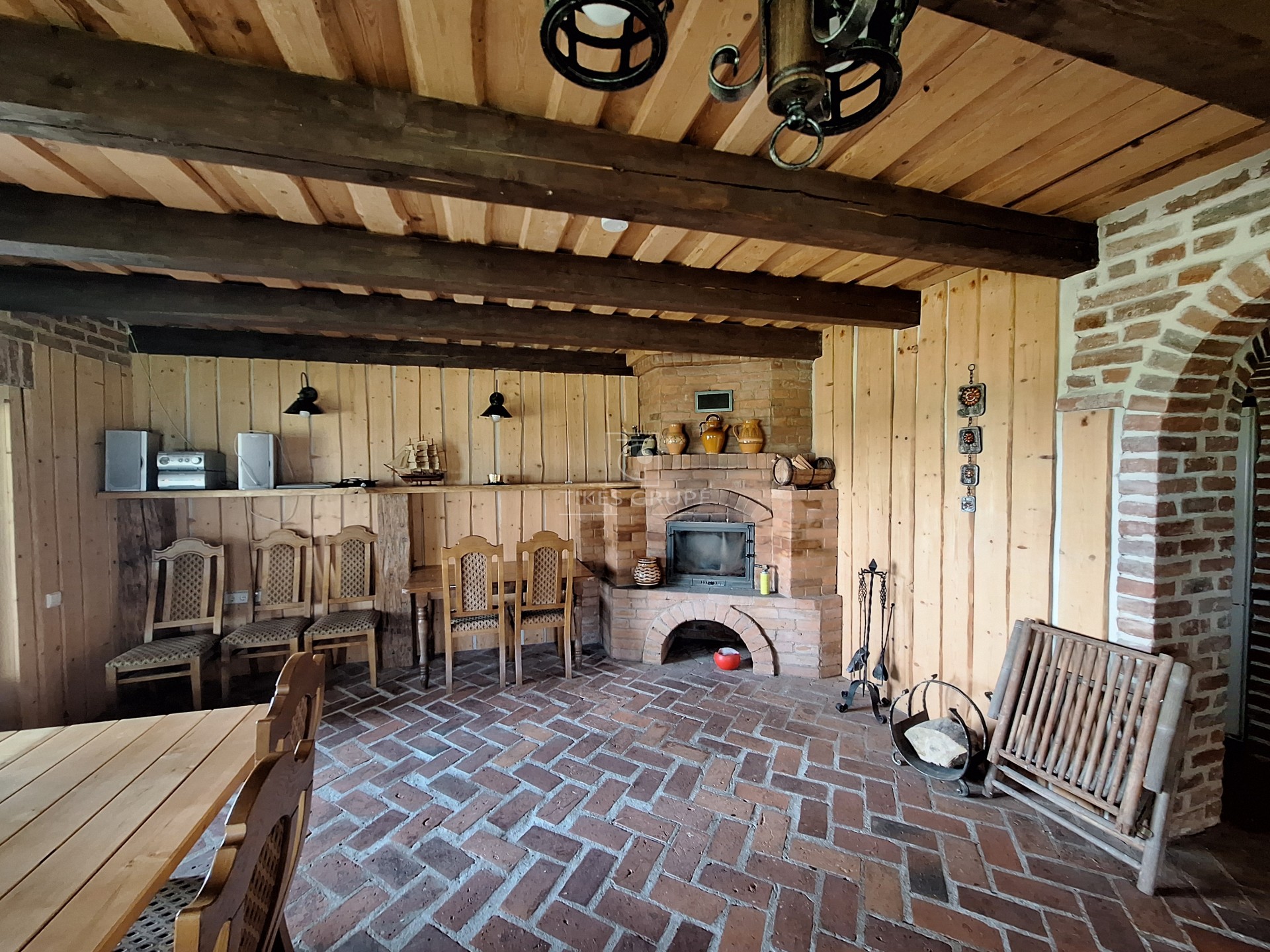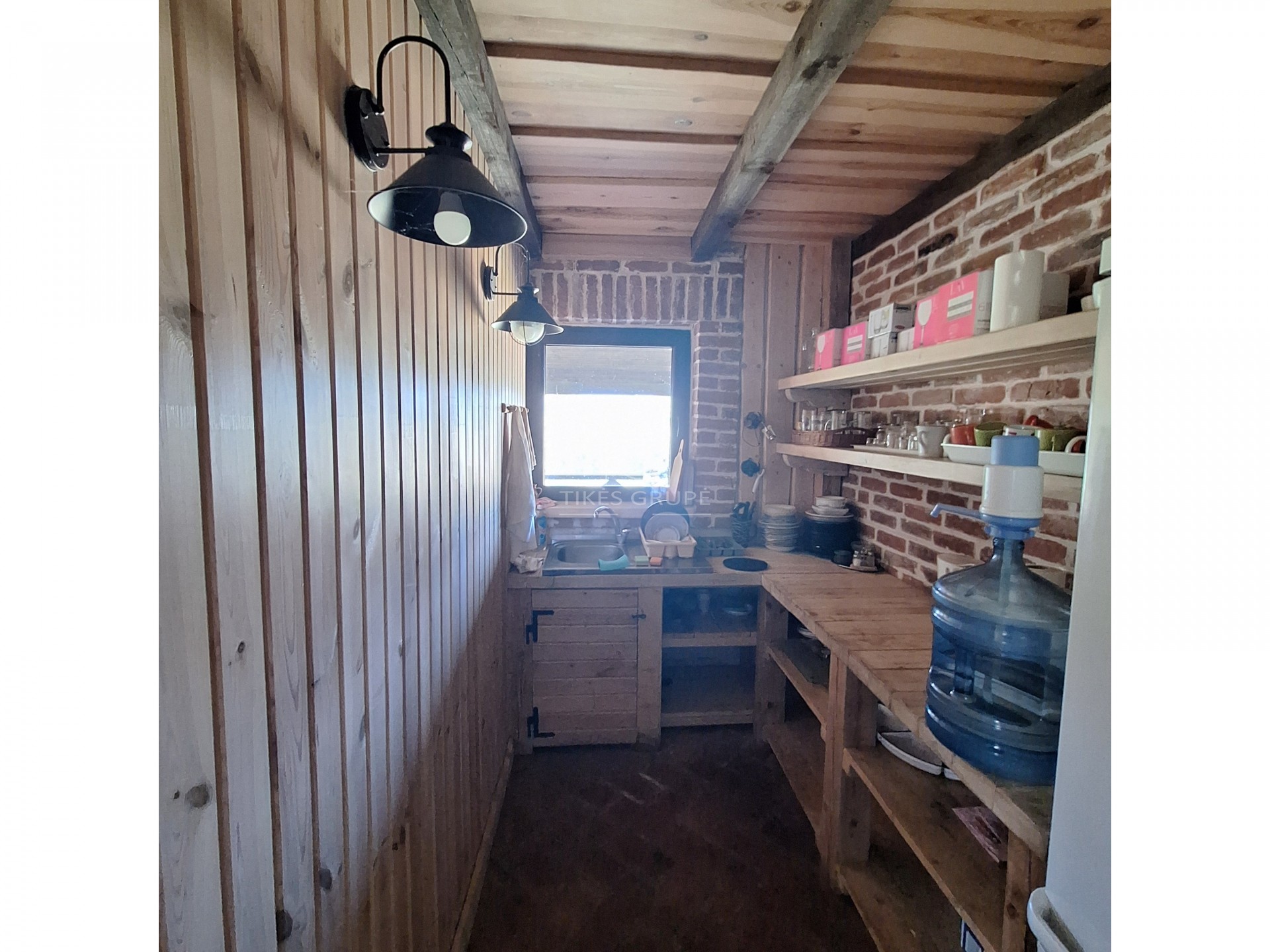 Dviejų aukštų namas su pirtimi 143 kv.m. Pirmame aukšte svetainė su židiniu, pirtis, priešpirtis, dušinė, wc, virtuvėlė, katilinė. Antrame aukšte 3 atskiri kambariai, wc patalpa. Šildymas kietu kuru, vanduo iš šulinio, nuotekos vietinės. Šio pastato paskirtis poilsio, galima keisti į gyvenamąją paskirtį.