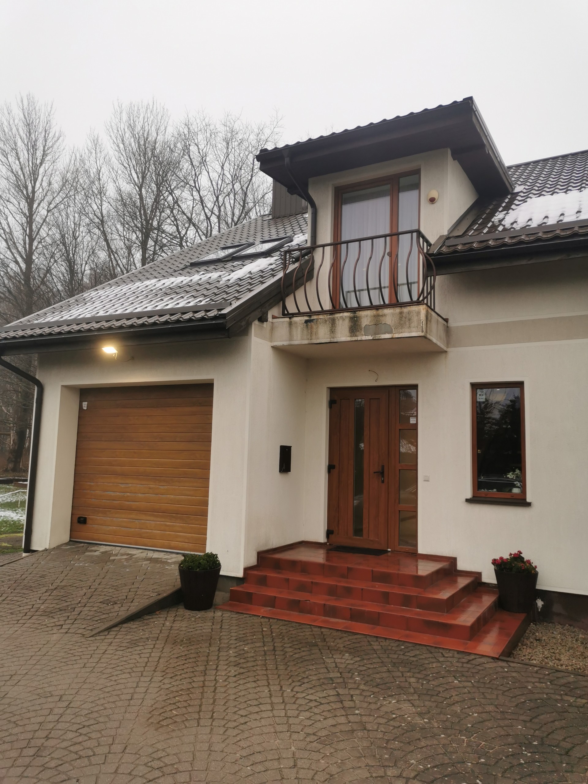 Nauja statyba, prie asfaltuoto kelio, yra miesto transportas, greta miško, su garažu, yra pastogė, yra terasa, kiemas išklotas trinkelėmis, sutvarkyta aplinka, plastikiniai langai, parketas, virtuvės baldų komplektas, yra židinys, apsaugos sistema