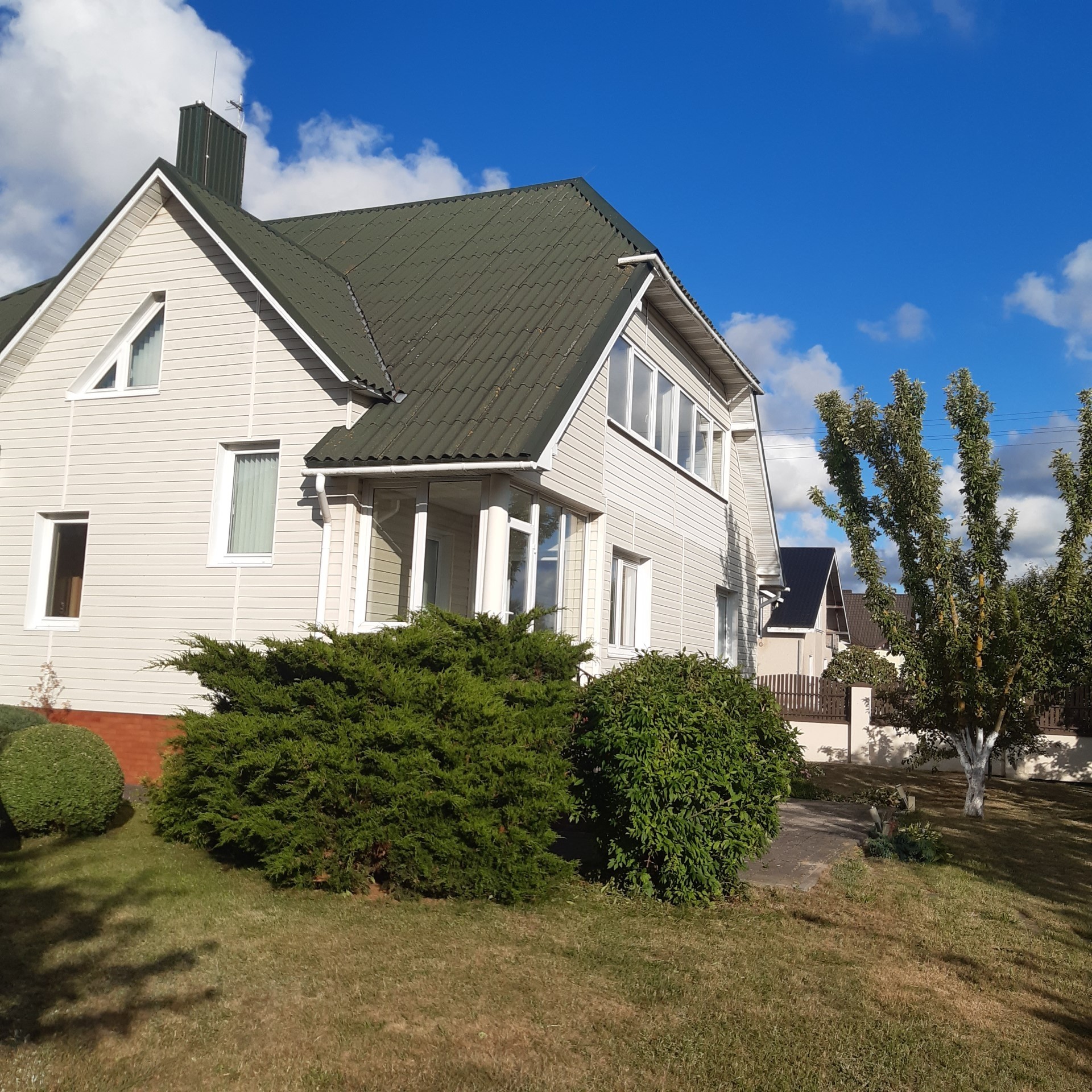 Namas 2 aukštų, Sklypas 10 aru Kaina 19300 Ūkinis pastatas su rūsiu - 201 kv. m., trys garažai. Paskutine foto 2001 m. statybos. Išduotas keitimo į gyvenamąjį namą statybos leidimas. Pirtis su atvira terasa – 30 kv. m. Sklypas 16 aru Kaina 120000