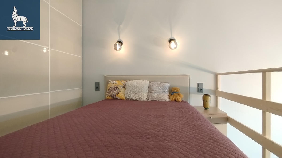 Išnuomojamas VIENAM ASMENIUI arba PORAI tik ką ĮRENGTAS, JAUKUS loftas 22,54 kv.m. + su TERASA 12 kv.m. + PARKAVIMAS, 3 kamerų REHAU plastikiniai langai nukreipti vakarų kryptimi.