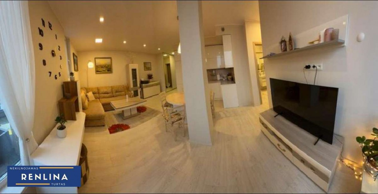 Butas pilnai įrengtas, su baldais, bei visa reikalinga buitine technika (viryklė su orkaite, šaldytuvas, indaplovė, skalbyklė, džiovyklė).