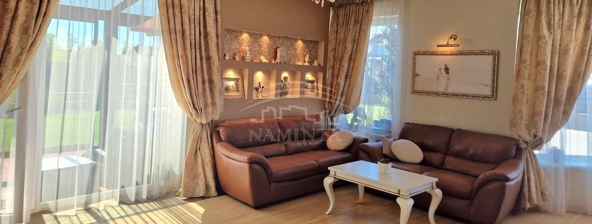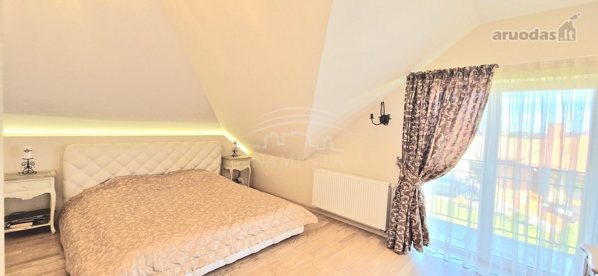 Parduodamas modernios klasikos stiliumi įrengtas šviesus ir šiltas 2 aukštų namas Slengiuose, su baldais ir buitine technika! Ieškote jaukių, erdvių ir kokybiškai įrengtų namų savo šeimai? Vieta: uždaras, saugus kvartalas Slengiuose – 10 namų bendruomenė su prižiūrėtu tvenkiniu, sūpynėmis, bendru parkingu ir šlagbaumu. Pagrindinė informacija: • Namo plotas: 209,3 m² • Sklypas: 11,46 a • Kambarių skaičius: 6 • Statybos metai: 2012 • Šildymas: dujinis • Vanduo – vietinis (130 m gręžinys, aukštos kokybės, bekvapis; mokama tik už siurbliui naudojamą elektrą) • Nuotekos – valymo įrenginiai, prižiūrimi rajono • Namo pridavimas - 100% Išplanavimas: I aukštas: • Erdvi šviesi svetainė sujungta su pilnai įrengta naturalaus medžio virtuvė su atskiru sandėliuku ir su valgomuoju ir išėjimu į įstiklintą, saulėtą terasą (grindinis šildymas) • Darbo/svečių kambarys (kabinetas) su didele įmontuota spinta (šildomas reguliuojamu radiatoriumi) • Vonios kambarys: erdvus dušas, dviguba kriauklė, pisuaras ir WC (grindinis šildymas) • Tambūras, sandėliukas • Erdvus garažas su sporto ir sandėliavimo zona (šildomas reguliuojamu radiatoriumi) • Katilinė su skalbimo zona (yra skalbimo mašina, džiovyklė ir įmontuota spinta) (grindinis šildymas) II aukštas: • 3 atskiri miegamieji su spintomis (šildomi reguliuojamais radiatoriais) • Didelis vaikų žaidimų ir laisvalaikio kambarys su projektoriumi bei ekranu (šildomas reguliuojamu radiatoriumi) • Vonios kambarys su vonia, kriaukle, bidė ir WC (grindinis šildymas) Namas ir teritorija pritaikyti ir patiems mažiausiams vaikams. Yra laiptų, turėklų ir židinio apsaugos, esant poreikiui viską galima palikti. Privalumai: • Namas įrenginėtas interjero dizainerių, laikantis modernios klasikos stiliaus – apgalvotos detalės, šviesūs tonai ir kokybiškos, natūralios ir prabangios apdailos medžiagos kuria jaukią, elegantišką atmosferą. • Parduodamas su kokybiškais baldais ir buitine technika • Įstiklinta terasa – greitai įšyla nuo saulės, papildomai įrengtas šildytuvas • Aptverta teritorija su automatiniais kalvystės vartais • Privažiavimas prie namo teritorijos išklotas trinkelėmis, su šaligatviais, apšviestas • Rami, draugiška kaimynystė ir bendruomeniška aplinka • Nebrangus išlaikymas Sklypas ir teritorija: • Erdvi dviejų automobilių pavėsinė • Lauko sandėliukas ir malkinė, sujungta su namu – patogu laikyti įrankius ir malkas • Įrengtas kompaktiškas sodas su vaiskrūmiais, daržovių lysvėmis ir 10 m² šiltnamiu Patogumai netoliese: • Rimi – 600 m • Maxima ir Lidl – ~1 km • Klaipėdos centras – 5 km (~10 min automobiliu) • Vaikų darželiai ir mokyklos – nuo 650 m • Viešojo transporto stotelė – ~600 m