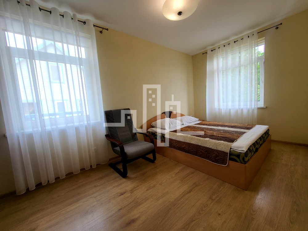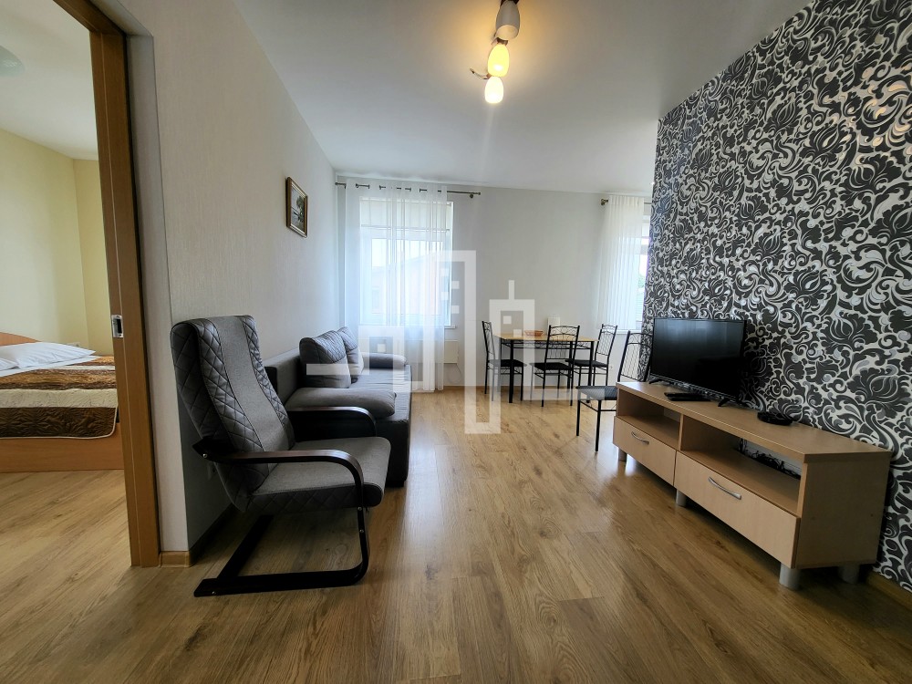 - kiekviename bute yra miegamasis, salonas sujungtas su virtuvėle, vonios kambarys su dušo kabina, kriauklė, WC, el. gyvatuku;