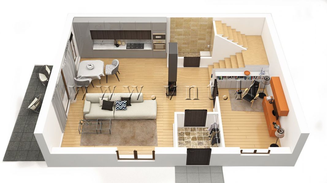 Vieno aukšto namas naujos statybos Trušelių k., b. p. 104 kv. m. Be vidinės apdailos. Sklypo plotas 5.75 aro. Yra visos ...