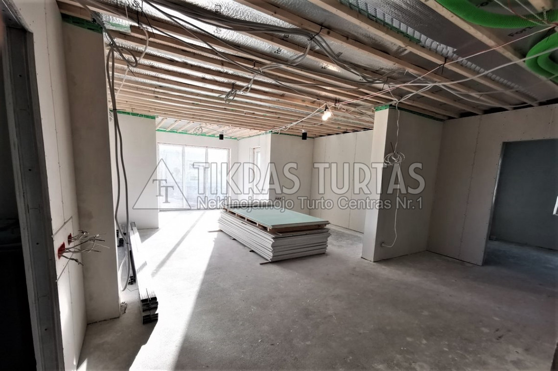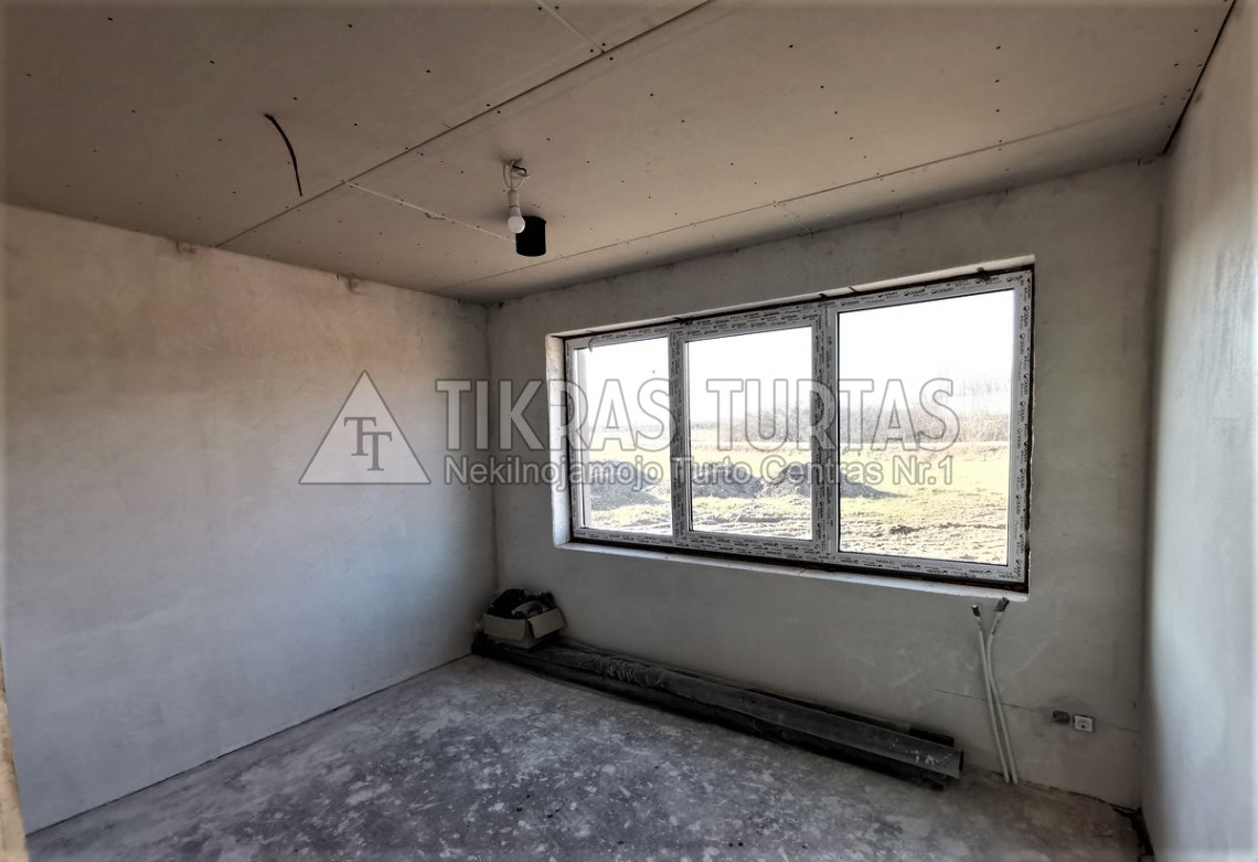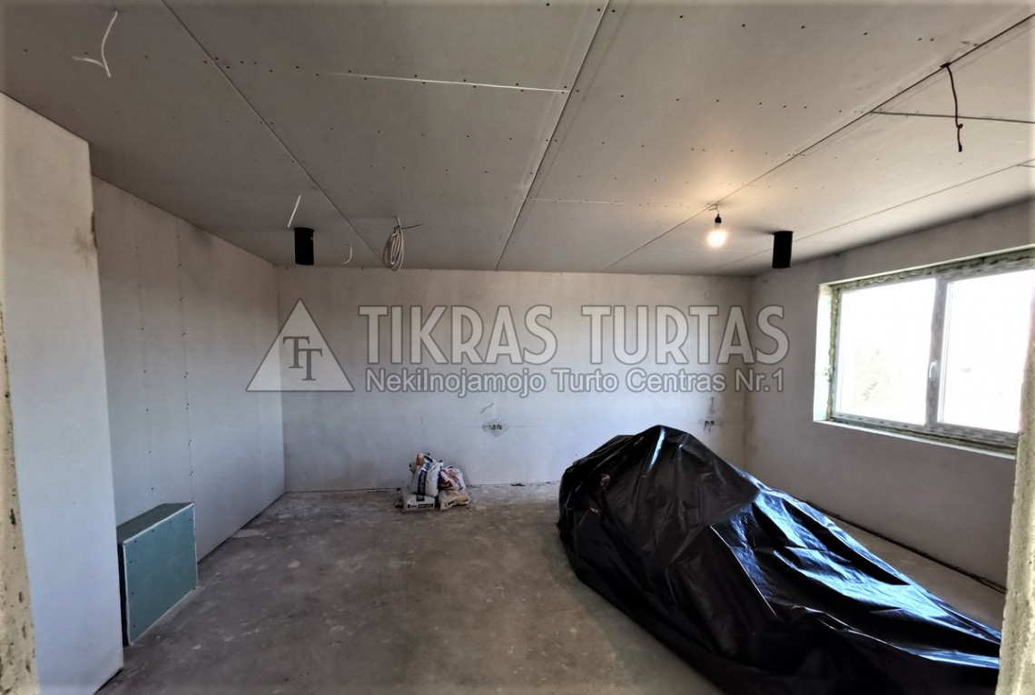 Parduodamas puikaus išplanavimo šiltas, ekonomiškas namas. Namo bendras plotas 125 m2, žemės sklypas 15,45a. Labai rami, jauki, graži vieta. Puikus susisiekimas su miestu, važiuoja miesto transportas, asfaltas, dviračių takai. Trys miegamieji kambariai, didele ir graži valgomasis - svetaine -virtuvė (apie 50 m2), išėjimas i terasa iš svetaines, vonios kambarys su WC, atskira patalpa katilinei, atskira rubine. Yra laiptai i antra aukšta (Antras aukštas apie 40 m2, neplanuotas , i planą ne įtrauktas). Namas buvo statomas sau, ne pardavimui bet dėl aplinkybių tenka parduoti. Namo baigtas apie - 85% Namas statomas tik kokybiškomis medžiagomis.Pamatai – juostiniai - monolitiniai; • Namas – mūro – akyto betonio blokelių; • Sienos – apšiltintos polistirolu; • Šildymas – planuojamas oras / vanduo; • Grindys – apšiltintos polistirolu, betonuotos, išvedžiotas grindinis šildymas, miegamuose radiatorinis šildymas. • Į namą atvesti tinklais – elektra , kvartalo vandentiekis ir kanalizacija; • Įrengta drenažo sistema aplink namą; • Įrengti elektros / signalizacijos instaliacijų įvadai; • Išvedžioti rekuperaciniai sistemai ortakiai, difuzoriai, kolektoriai.