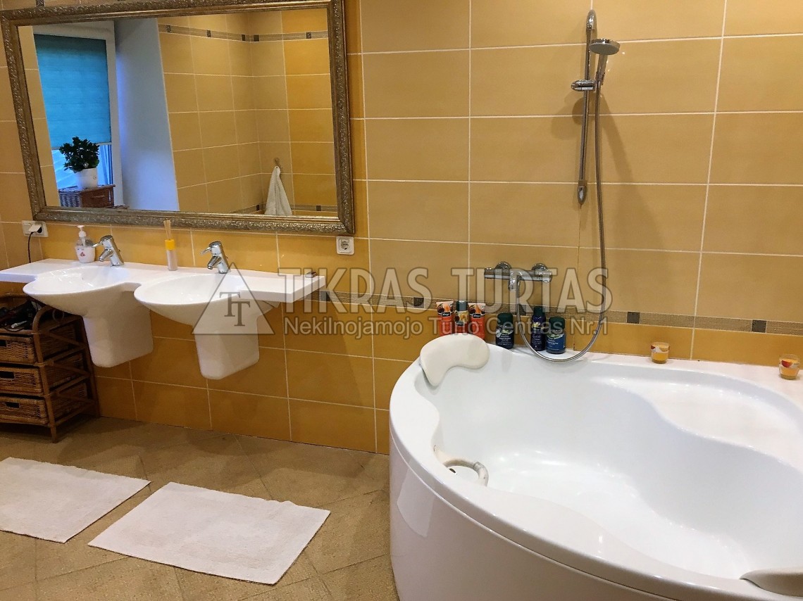 Du namai : vienas gyvenamas 242 kv. m. Pirmam aukste virtuve, holas - svetaine ir WC kambarys su dusine(viskas sujungta); antrame aukste vonios kambarys 9 kv. m. su langu ir 3 miegamieji, rubine, visi kambariai erdvus dideli 24 - 27 - 42 kv. m. Namas apsiltintas putomis i oro tarpa - nauja santechnika, aliuminiai radiatoriai- sildymo sistemos vamzdziai variniai. Langai plastikiniai su apsauginemis zaliuzemis - sildomas garazas. Antras pastatas : sveciu namas- pirmam aukste svetaine su zidiniu - PIRTIS, dusas; antrame aukste didele svetaine su zidiniu ir miegamasis; viso 120 kv. m., garazas sildomas - su pakeliamais automatiniais vartais. Abu pastatai sildomi is vienos katilines, granulinis šildymas. Teritorija apzeldinta, brandus sodas su vaismedziais, kiemas isklotas trinkelemis, teritorija aptverta. Sutvarkytas gerbuvis, augalija. Parduodamas su visais baldais ir technika, sodo ir aplinkos tvarkymo irankiais.
