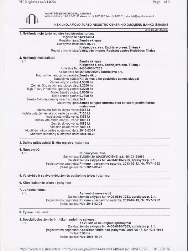 Parduodu 4.5 ha.Silenu k.is ju 50 aru misko.Miske yra 15 labai senu azuolu.Sklypas ribojasi su Autostrada Klaipeda-Kaunas.Atstumas nuo Klaipedos pasto 36 km.Zemes nasumo balas 35. NUOSTABI VIETA VERTINANTIEMS GAMTA ! DAUGIAU ALTERNATYVIŲ PASIŪLYMŲ RASITE ADRESU Reikalinga profesionali pagalba PERKANT ar PARDUODANT nekilnojamąjį turtą - KREIPKITĖS !!! NEMOKAMAI KONSULTACIJAI,SKAMBINKITE 865090890 Investuok į žemę šiandien! Žemė nesensta, negenda, nedega, niekur nepradingsta, yra nedraudžiama. Tai patikima, ilgalaikė ir atsiperkanti investicija, pigesnė nei šiandien vargiai kada dar ar bus. Atsisiuntus į telefoną “geoportal.lt” programėlę galėsite nuvykus matyti sklypo ribas ir apžiūrėti sklypą pagal jo ribas. Norint žemėlapyje įjungti sklypo ribų atvaizdavimą reikia atlikti šiuos veiksmus: Meniu->Sluoksniu įkėlimas->Duomenys matininkams ir žemėtvarkininkams-> reikia pastatyti varnele ties “Nekilnojamo turto kadastro žemėlapis (sklypai)” – ir matysite sklypu ribas bei kadastro numerius, atvykus į sklypą galėsite lengvai telefono pagalba apžiūrėti sklypą. - galima surasti sklypą žemėlapyje ir pasižiūrėti iš palydovo darytas nuotraukas, kas tris metus. NEMOKAMAI KONSULTACIJAI,SKAMBINKITE 865090890 NEMOKAMAI KONSULTACIJAI,SKAMBINKITE 8650 90890