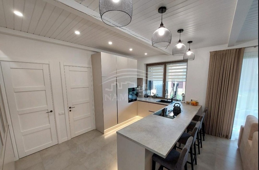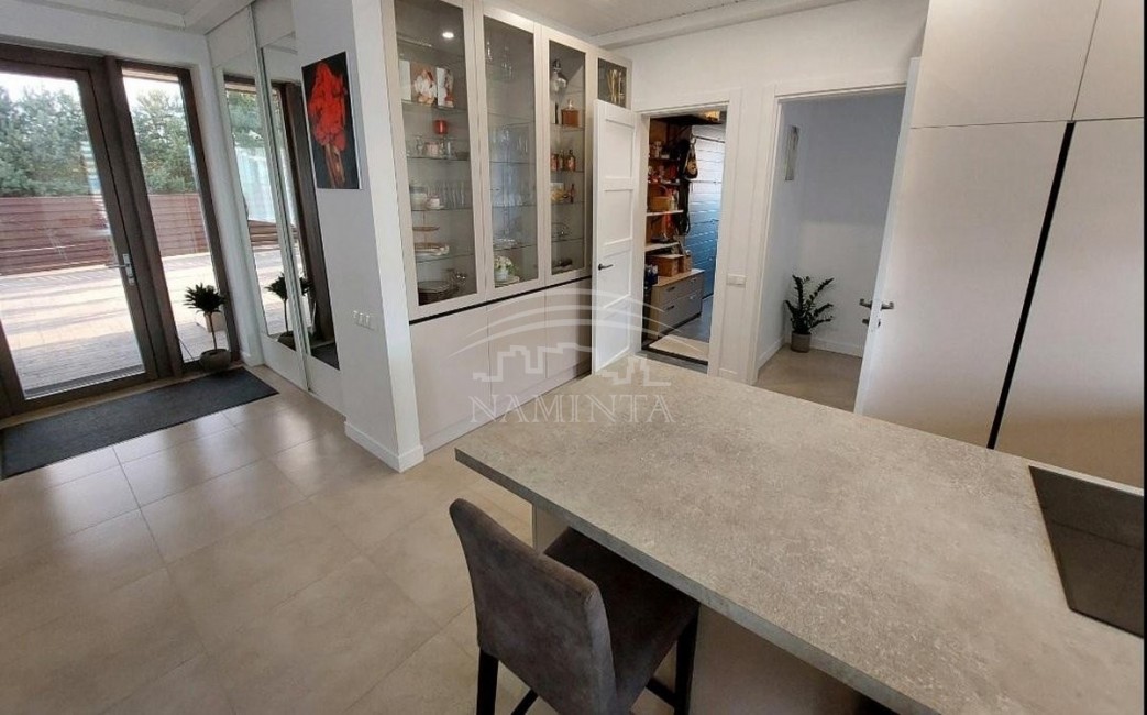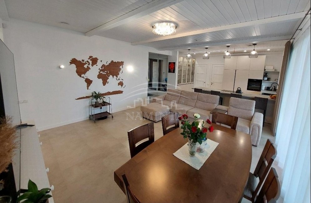 Klaipėdos r.,Klipščių k. parduodamas namas.Naujos statybos karkasinis 1a,140kv namas, A++ klasės,pilnai įrengtas,virtuvė su svetaine,3 kambariai,san mazgas, su baldais ir buitine technika,terasa, geoterminis šildymas,įrengta laistymo sistema,sutvarkytas ir aptvertas sklypas. Sklype yra jūrinis konteineris su ofiso patalpa, planas daryti laisvalaikio erdvę, kambarį/miegamajį ir sandelį (visos apdailos medžiagos, langai ir durys yra).Kaina su visais baldais, buitine technika ir jūriniu konteineriu .